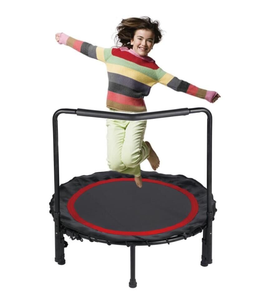 Home > 36" Foldable Mini Trampoline,Fitness Trampoline with Adjustable Handrail and Safety Pad,Indoor/Outdoor Exercise Rebound Trampoline for Kids