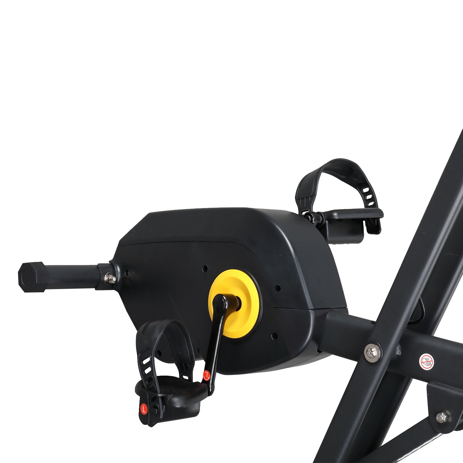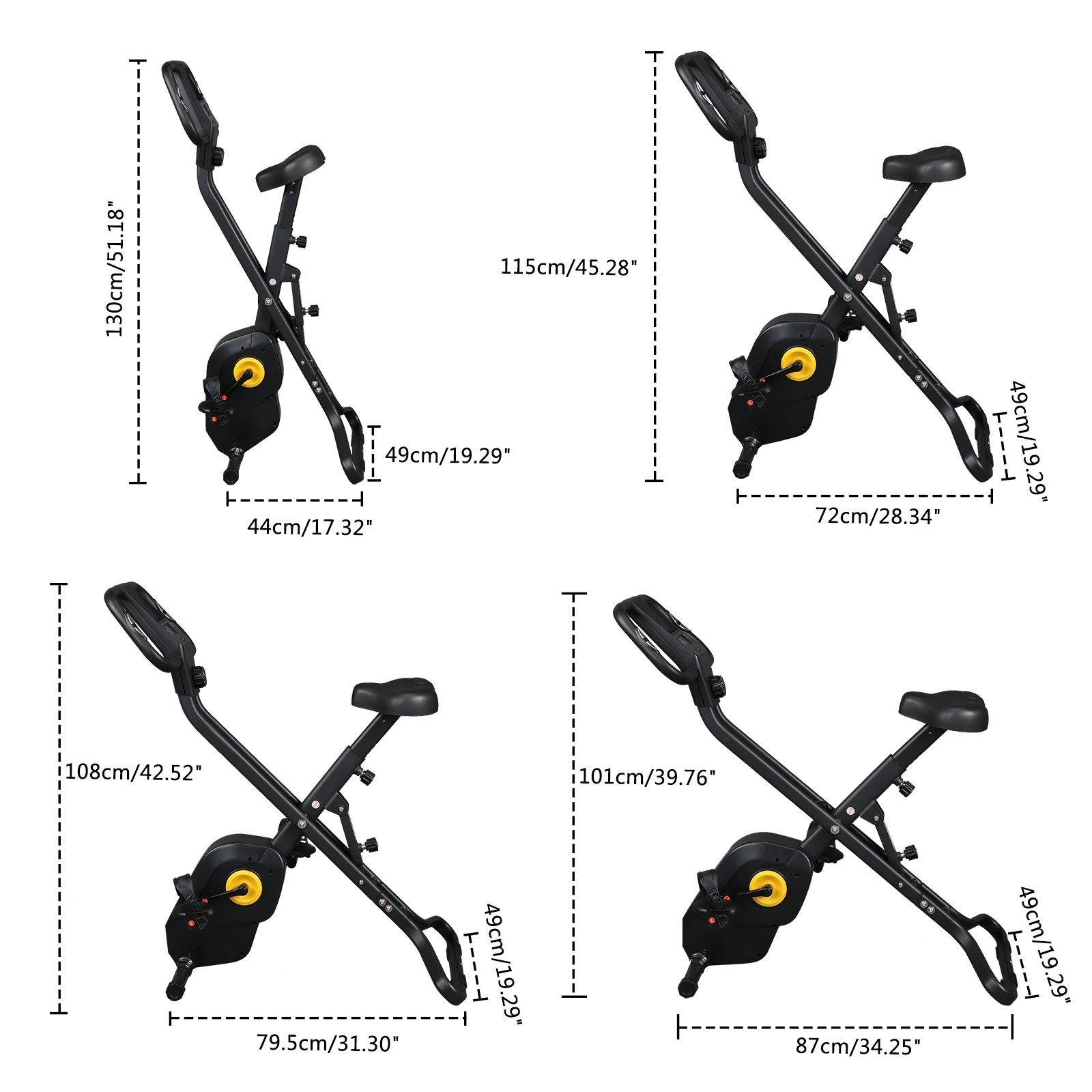 Introductions:Have regular physical training is good for both health and bodybuilding! You may be wildered about various training appliance. Take it easy here! Our Exercise Bike may greatly satisfy you! It is in delicate design integrating premium material and ergonomic treatment; well fit for your physical structure. This exercise bike can save you a lot of money and living spaces. Thanks to its sophisticated design; this exercise bike will provide you with unexpected enjoyment during exercise. How can you miss it out?Features:1. Sturdy and durablee2. Comfortable seat with high backerst3. It has resistance bands both for arm and leg; You can have stretching exercises after cycling workout4. Hand pulse handle with pre-assembled exercise monitor5. High-end curved crank arm with anti-slip pedal with soft shoe strap makes the pedaling trainingSpecifications:1. Material: Frame-Steel; Cushion-Pu Foam; Flywheel Shell-Abs2. Color: Frame-Black; Electronic Watch-Black; Flywheel Housing-Black/Yellow3. Spraying Process: Baking Varnish4. Vehicle Size: (34.65 x 20.08 x 45.28)" / (88 x 51 x 115)cm (L x W x H)5. Backrest Size: None6. Cushion Size: 230*285Mm7. Flywheel Weight: 8.82lb / 4kg8. Reluctance Adjustment Gear: 8-Speed Manual Adjustment9. Seat Height Adjustment Gear: 7 Gears Adjustable10. Seat Range Adjustment Gear: 3 Gears Adjustable11. Electronic Meter (Display Function): Scan/Time/Speed/Mileage/Calories/Total Mileage12. Load Bearing: 220.46lb / 100kg13. Product Net Weight: 40.34lb / 18.3kg14. Packing Size: (45.67 x 15.75 x 8.66)" / (116 x 40 x 22)cm (L x W x H)15. Gross Weight Of Packaging: 46.96lb / 21.3kg16. Box Rate: 1Package Includes:1 x Frame1 x Electronic Watch1 x Front Armrest*11 x Seat Cushion*11 x Cushion Telescopic Tube2 x Pedal2 x Foot Tube1 x Small Knob1 x Tool Screw Bag1 x Manual