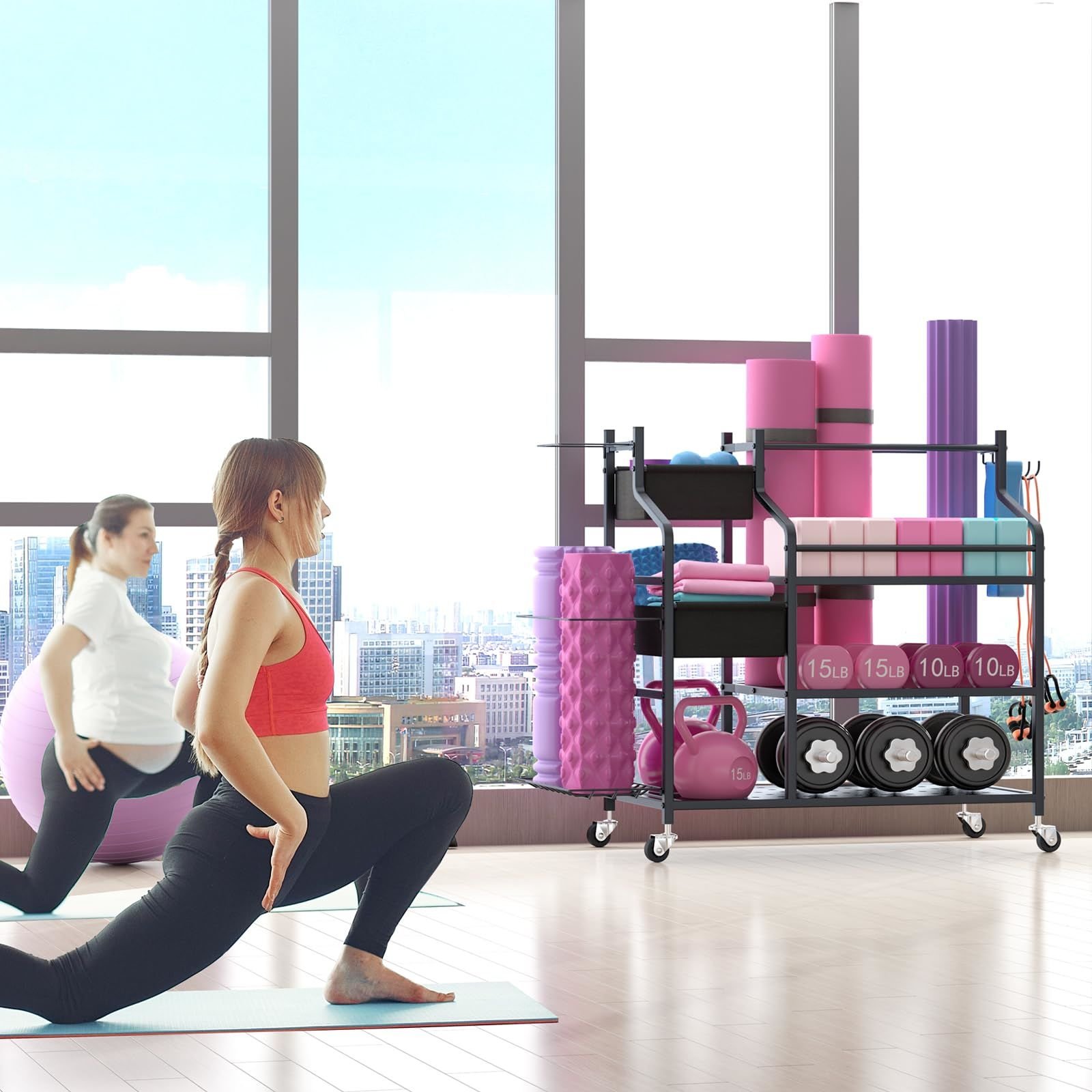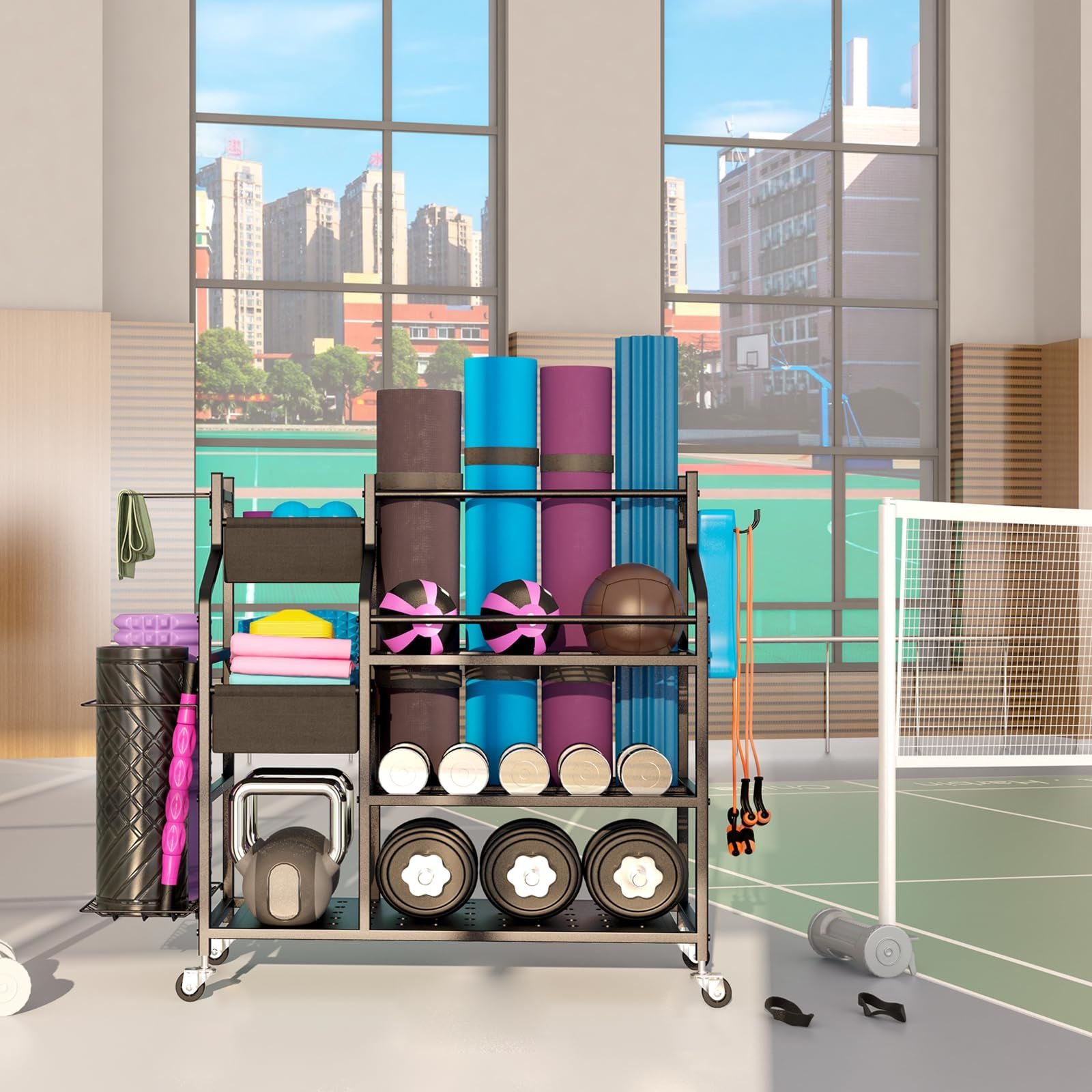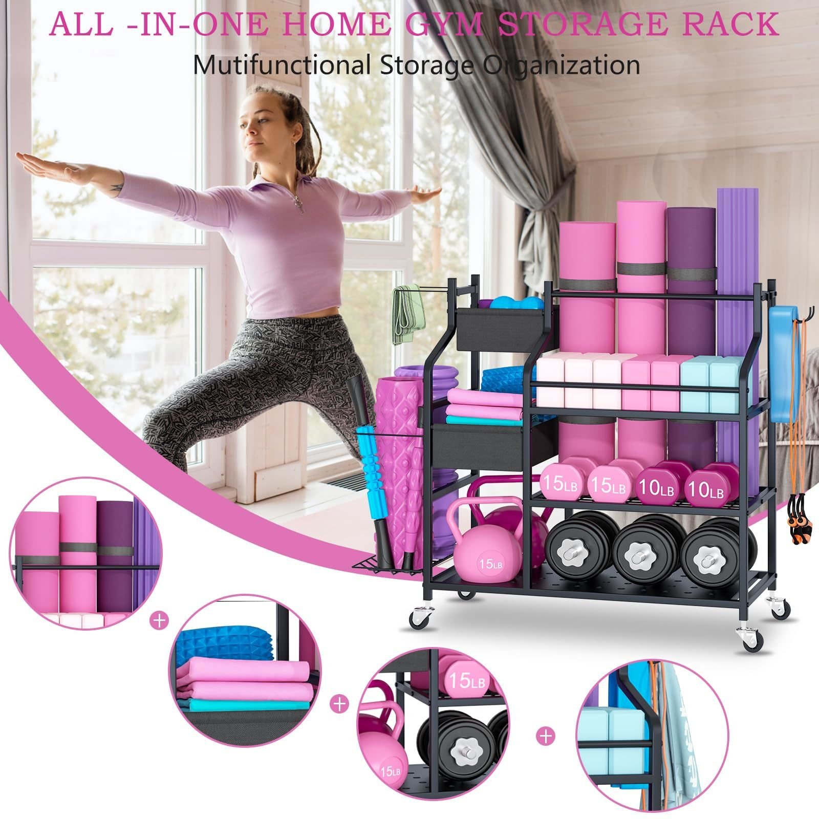 [MUTI-FUNCTIONAL] The shelf of this Gym organizer storage have three tires , each with a different design for a variety of gym equipment. Such as different sizes of yoga mats Dumbbell jump Rope foam roller , Kettlebells, etc.It is suitable for home gym, yoga studio, and gymnasium.