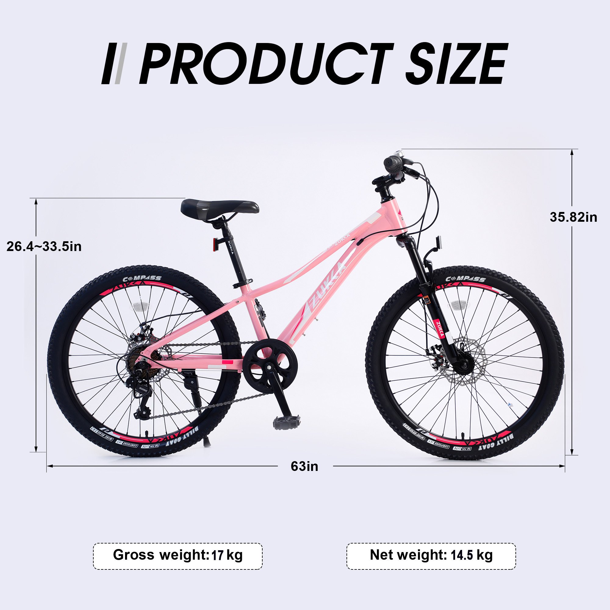 Product DetailsBike TypeMountain BikeAge Range (Description)KidsNumber of SpeedShimano 7 SpeedWheel Size24 InchFrame MaterialAluminum alloy FrameSuspension TypeSuspension forkFrame Size10 inch Frame