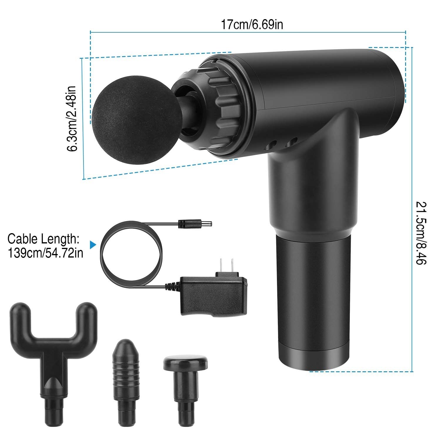 *45dB Low Noise & Cordless*:Use this cordless rechargeable percussion massager anytime you want!Despite its robust power,it is equipped with an extra silent motor which operates 45 dB only. Rear heat dissipation holes extend your massager’s lifespan.