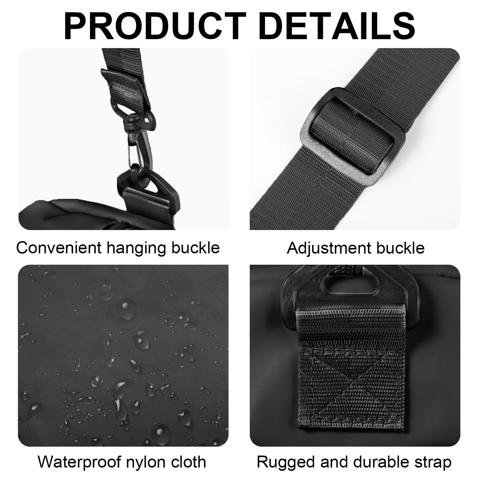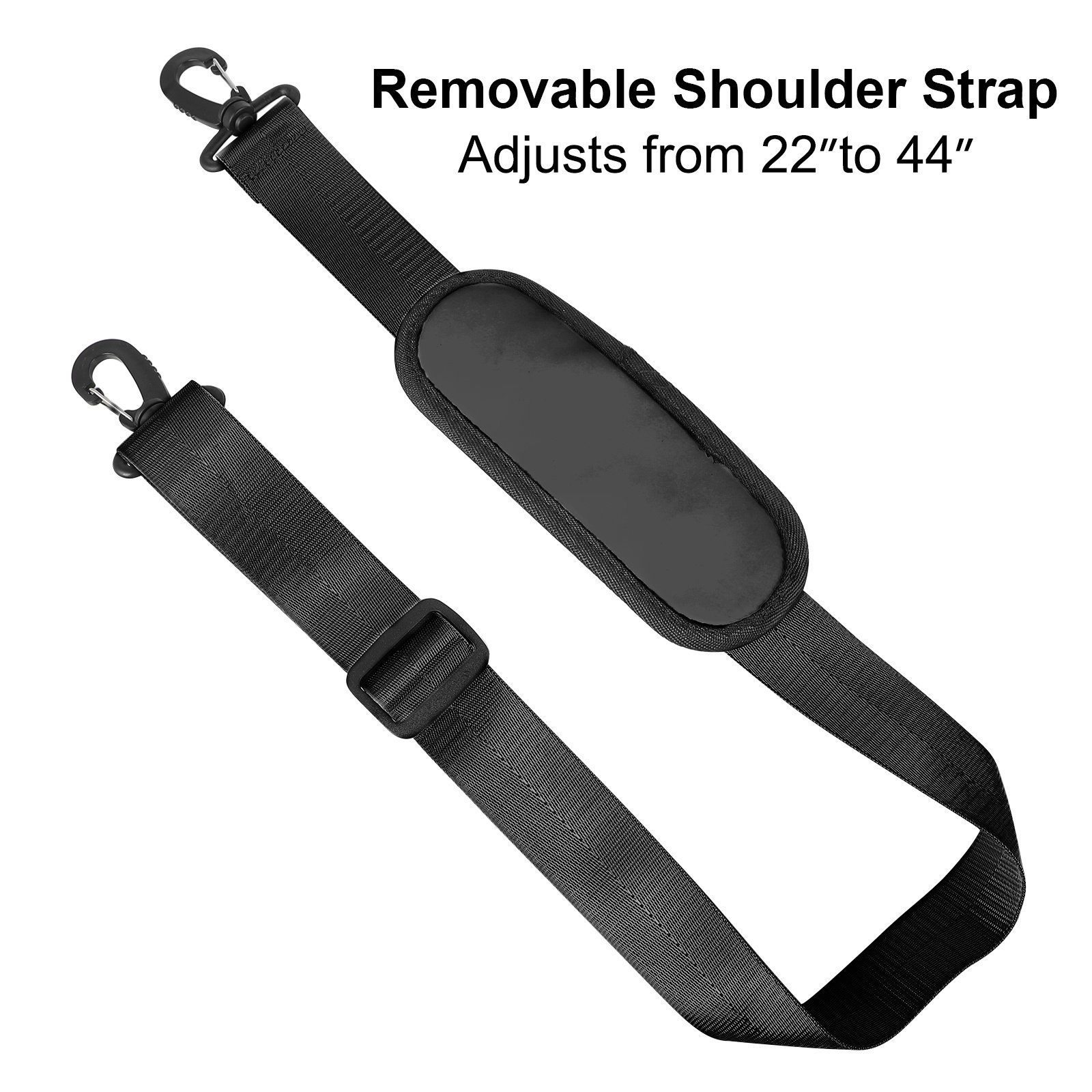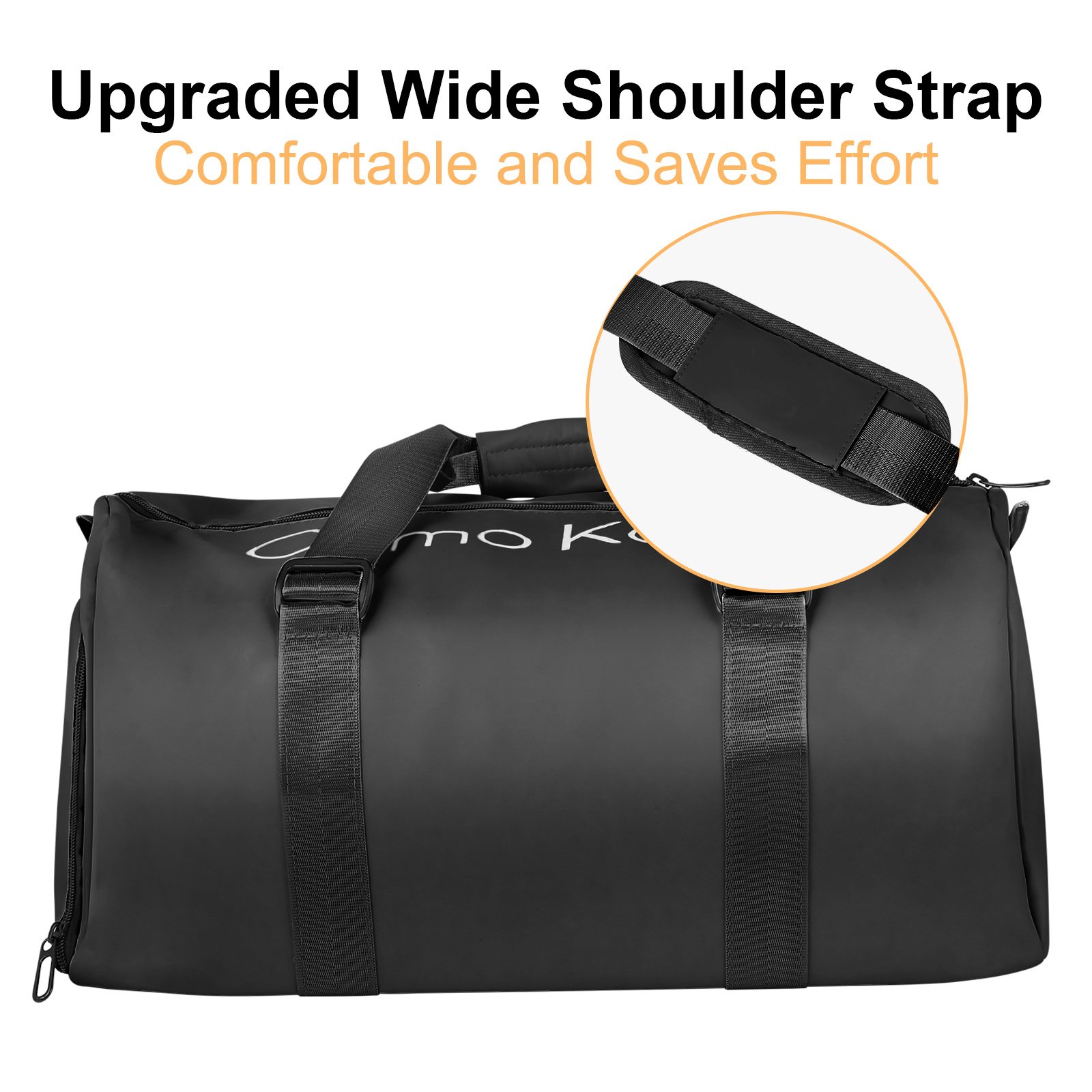 [COMFORTABLE STRAPS] This duffel bag was designed accord with ergonomic . The wide handles make sure your shoulder feel comfortable when carrying heavy objects. This bag comes with a removable shoulder strap with adjustable buckle; The length of the shoulder strap is adjustable from 22'' to 44''. The two hand straps fixed on the bag can be separate or tight together. Enjoy using the bag with multiple ways of carrying!
