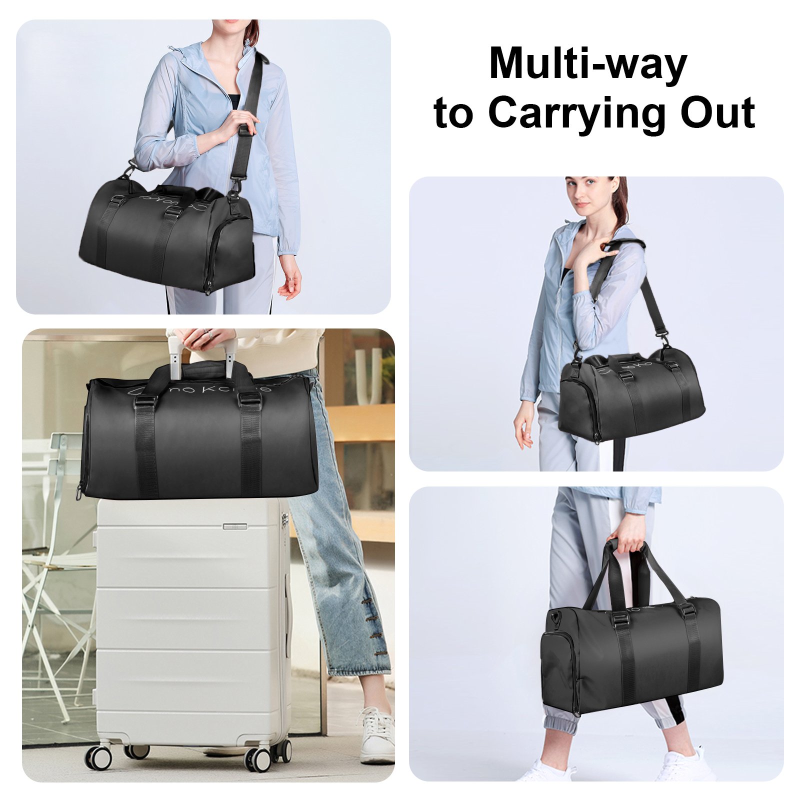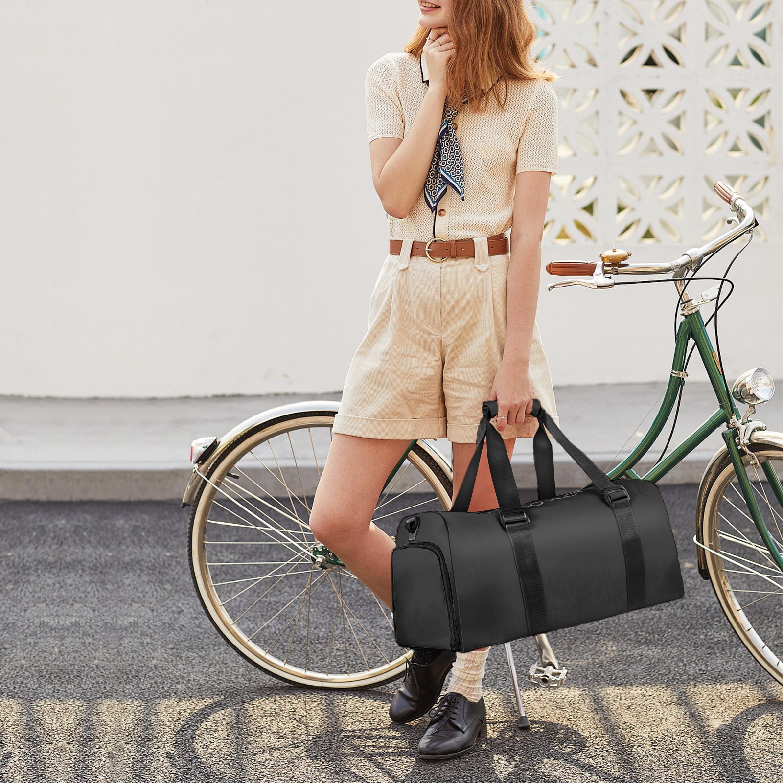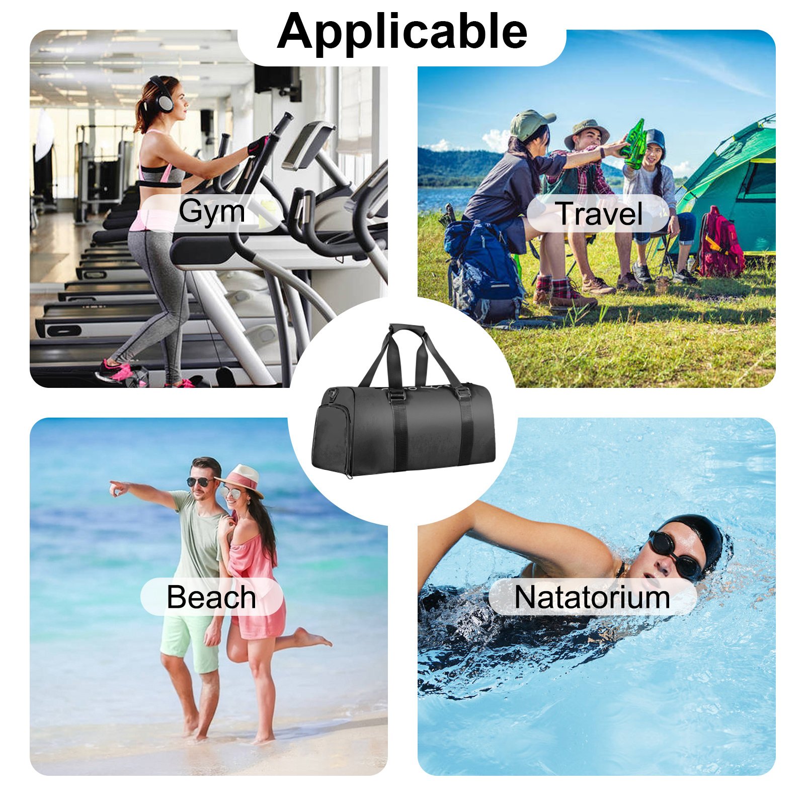 [PERFECT SIZE] This duffel bag is suitable for women, men, and kids. Measuring 19"x9.8"x9.8", it's small enough to carry on or stack it on your suitcase yet big enough for work travel or beach getaway. You can use it for various activities, and sports such as tennis, dance, golf, football, cross fit, and swimming.