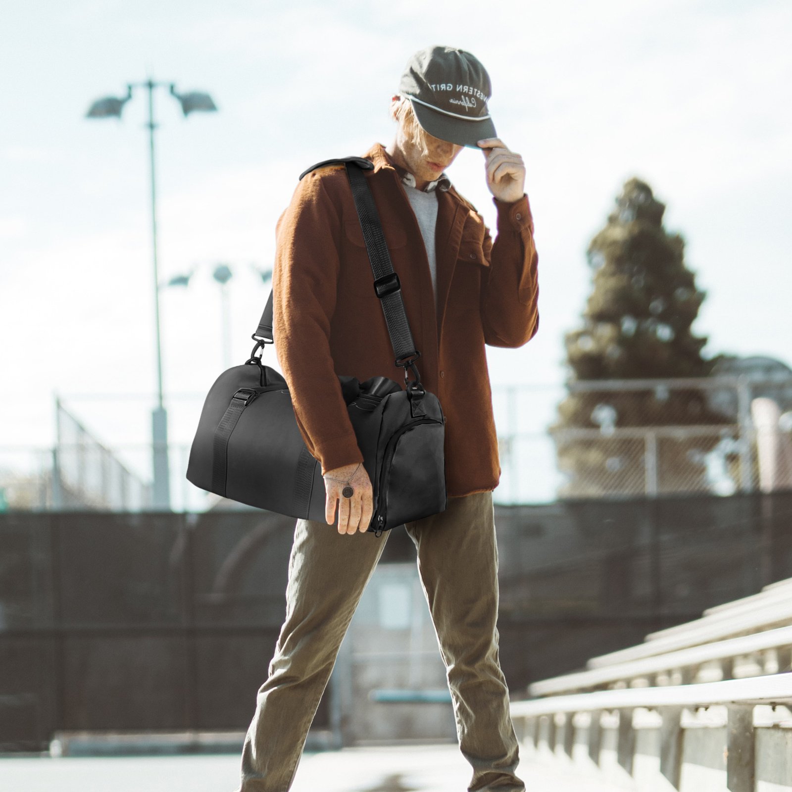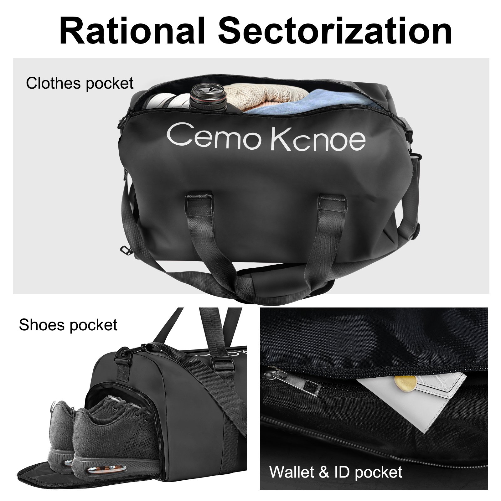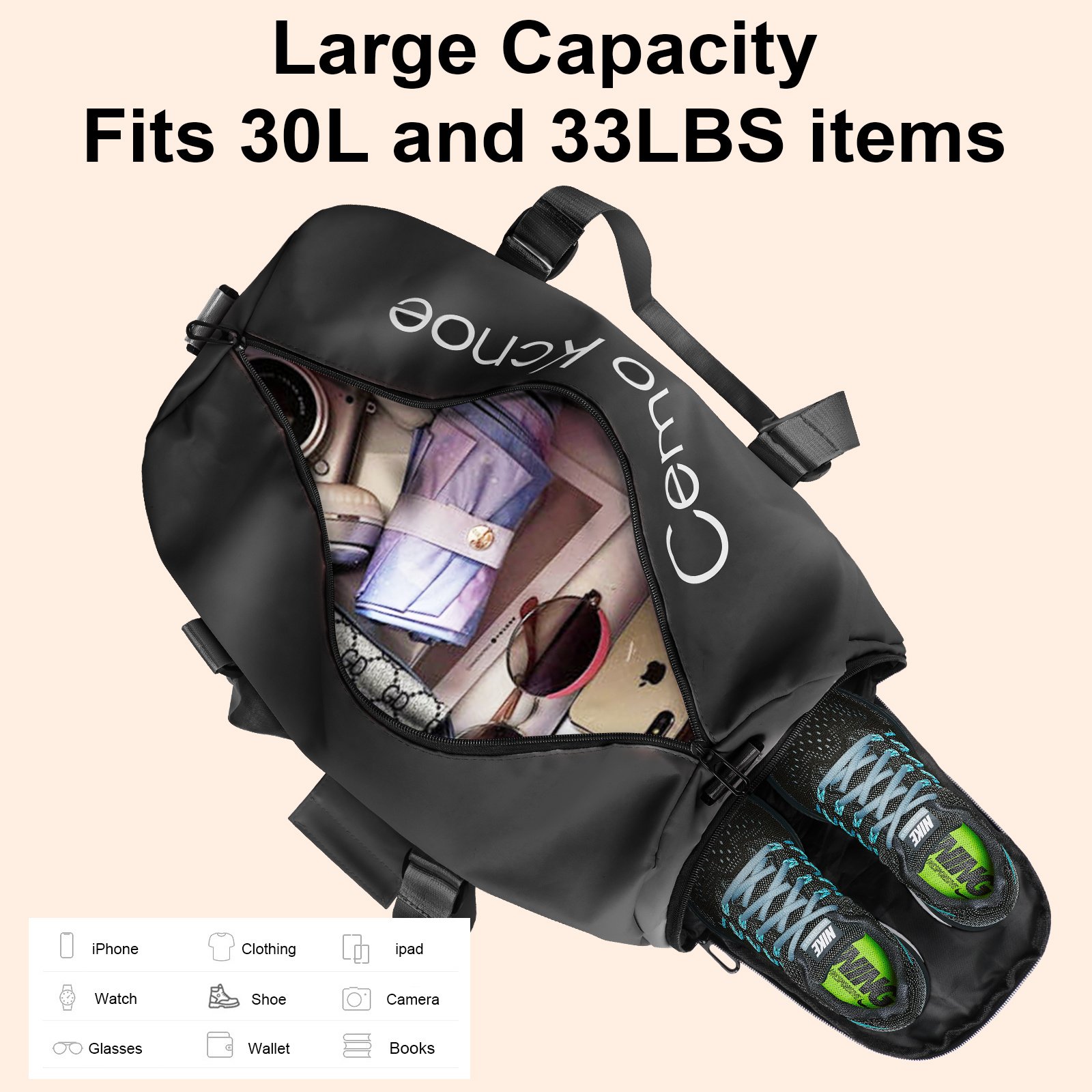[PERFECT SIZE] This duffel bag is suitable for women, men, and kids. Measuring 19"x9.8"x9.8", it's small enough to carry on or stack it on your suitcase yet big enough for work travel or beach getaway. You can use it for various activities, and sports such as tennis, dance, golf, football, cross fit, and swimming.